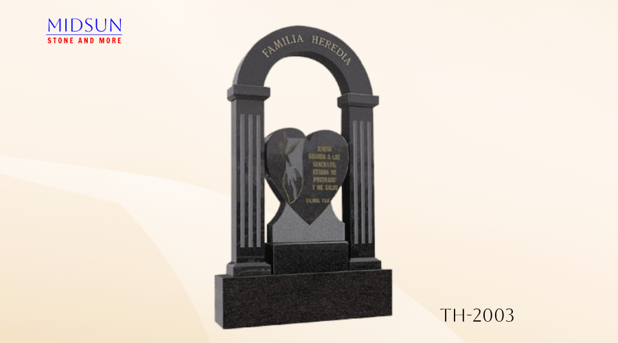 Nombre del producto: Frente de la lápida está tallada con forma de corazón y columnas
