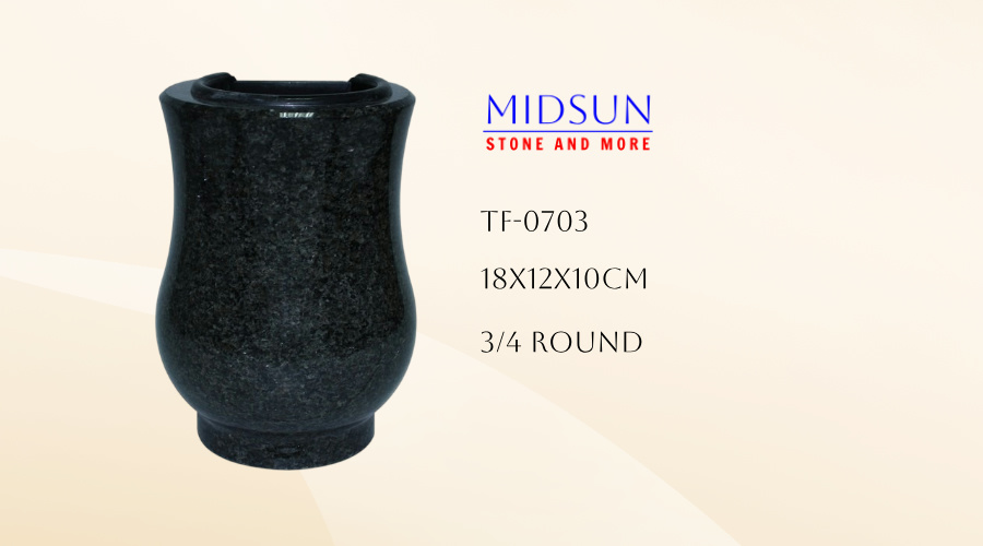 Este jarrón de flores se utiliza en lápidas al aire libre como producto complementario. Está hecho de piedra natural. Los usuarios pueden elegir entre varios tipos de granito y mármol. Los colores de granito comúnmente utilizados incluyen Magnetic Azul, Verde Olivo, Labrador Claro, Negro Intenso,Gris Quintana , Mármol Blanco, Rojo Multicolor, Impala Sudáfrica, etc.